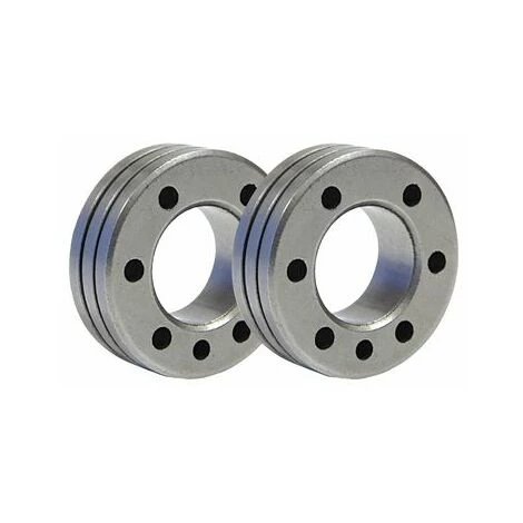 Lot de 2 galets double gorge en V 35° pour fil massif acier Ø 0,6 et 0,8 mm. Diamètre extérieur 37mm Diamètre du trou 19mm Le galet sert à entraîner le fil dan le poste à souder. Ces galets vous permettront de souder avec du fil acier en 0.8 ou en 0.6mm selon le sens dans lequel il est installé. S’utilise pour les soudures avec du gaz. Compatibilités postes GYS :• MAGYS 350-4, 400-4• WS-4L et WS-4R• NEOPULSE 270 et 300• NEOFEED-4L• EXAFEED-4L• NOMADFEED