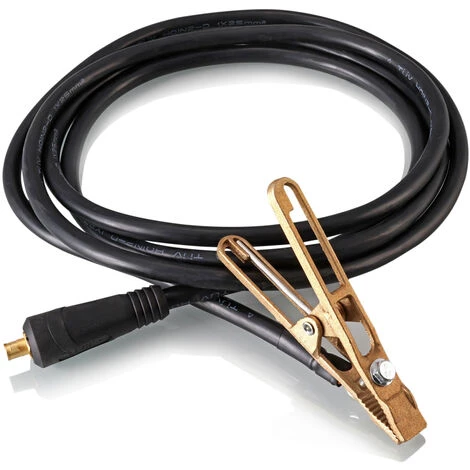 Ce câble de soudage de 5 mètres de long, avec sa grande force de serrage, assure une bonne tenue. Sa section de câble est de Ø 25 mm² et peut être chargée jusqu’à 260 A.