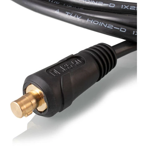 Le câble de soudure est entièrement assemblé avec une fiche et une borne de terre. La pince de terre est en cuivre tressé et se compose de mâchoires de serrage solides ainsi que de leviers à ressort puissants, ce qui permet d’établir un contact avec une pièce de valeur. Ce câble de soudage de 3 mètres de long, avec sa grande force de serrage, assure une bonne tenue. Sa section de câble est de Ø 25 mm² et peut être chargée jusqu’à 500 A.