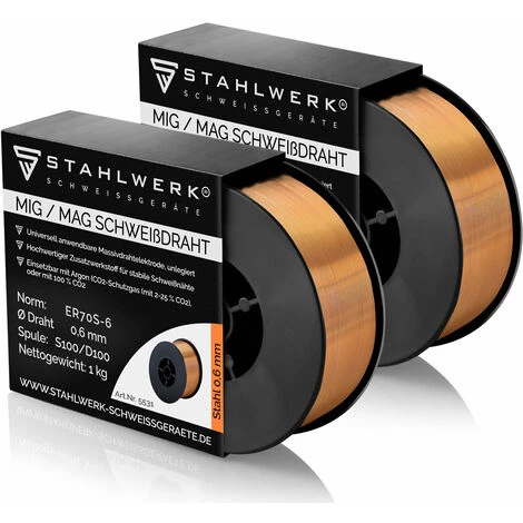 - 2 × STAHLWERK Fil de soudure MIG MAG ER70S-6 SG3 Ø 0.6 mm / 1 kg Rouleau de fil S100/D100