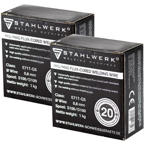 - 2 × STAHLWERK MIG MAG fil fourré FLUX E71T-GS Ø 0,8 mm / bobine 1 kg S100/D100