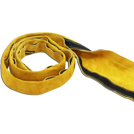 - Le cuir fendu de vachette ignifugé protège les câbles des étincelles volantes, ce qui augmente la durée de vie du tuyau.